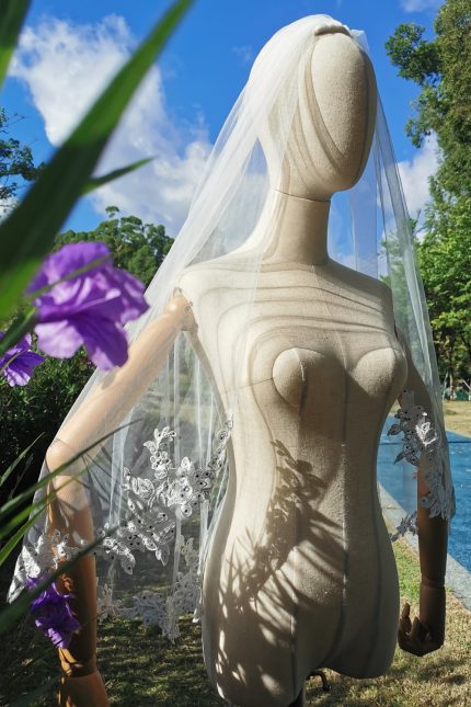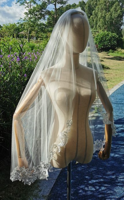 All the veils in our collection are customizable, meaning we can custom make your veil in whatever length you desire, add extra beading, or extralace or embellishments. Or even change the positioning of the lace to suit your taste and style.