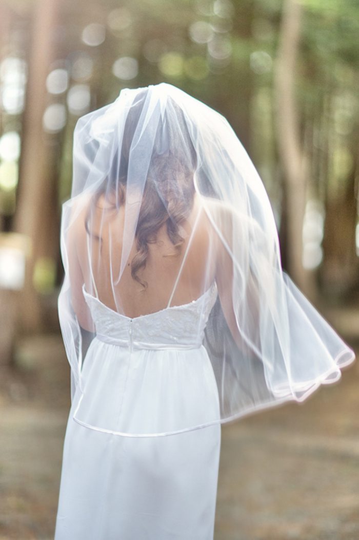 1 tier simple satin ribbon edge mid wrist length bridal wedding Veil V604S