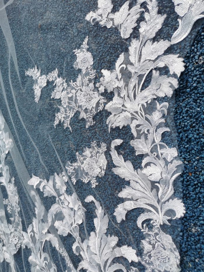 All the veils in our collection are customizable, meaning we can custom make your veil in whatever length you desire, add extra beading, or extralace or embellishments. Or even change the positioning of the lace to suit your taste and style.