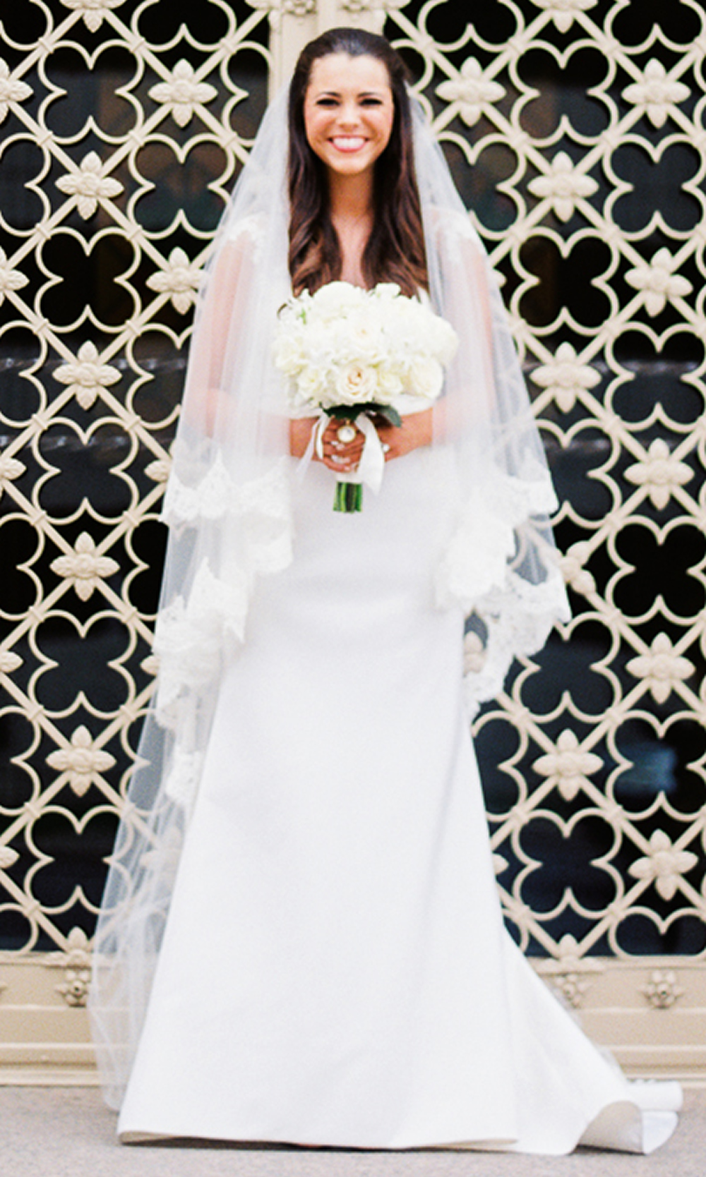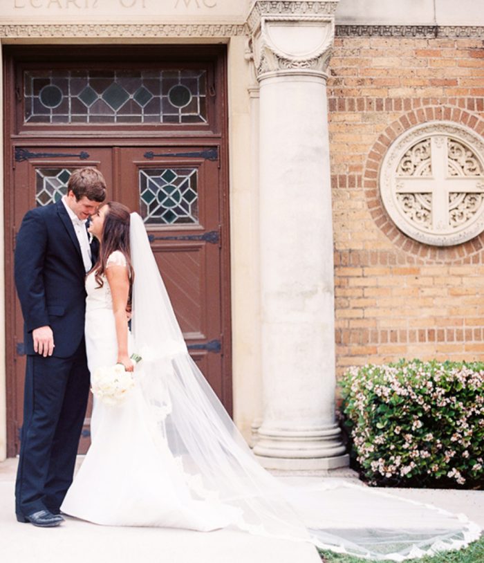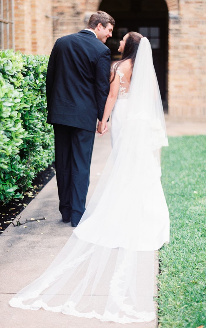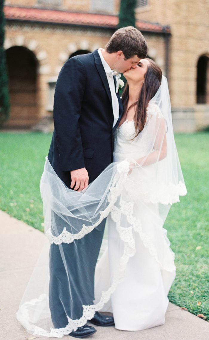 *Fabric: Soft illusion bridal tulle with French Alencon lace trim.