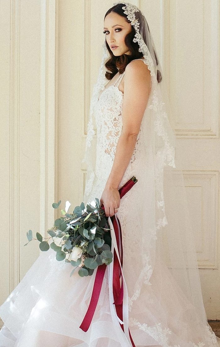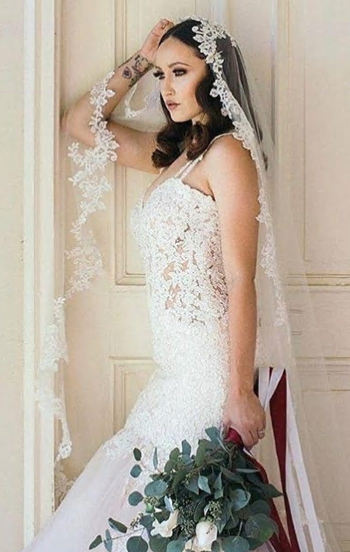 *Fabric: Soft illusion bridal tulle withcorded floral embrodiery lace appliques.