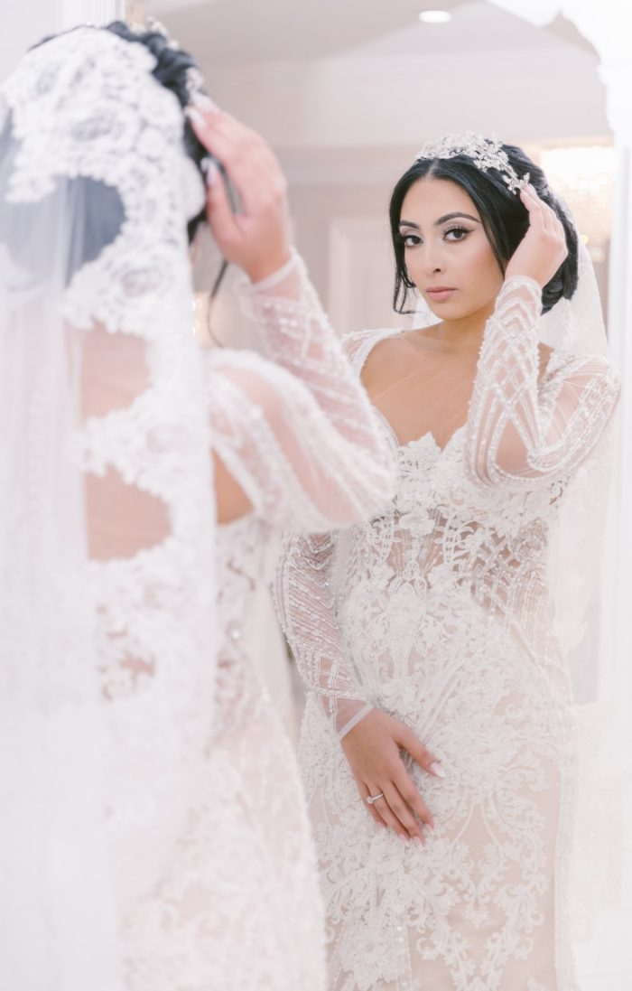 *Fabric: Soft illusion bridal tulle with French corded embrodiery lace.